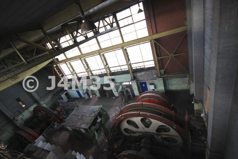 The winding gear at Clipstone Colliery, shot from the crane gantry.