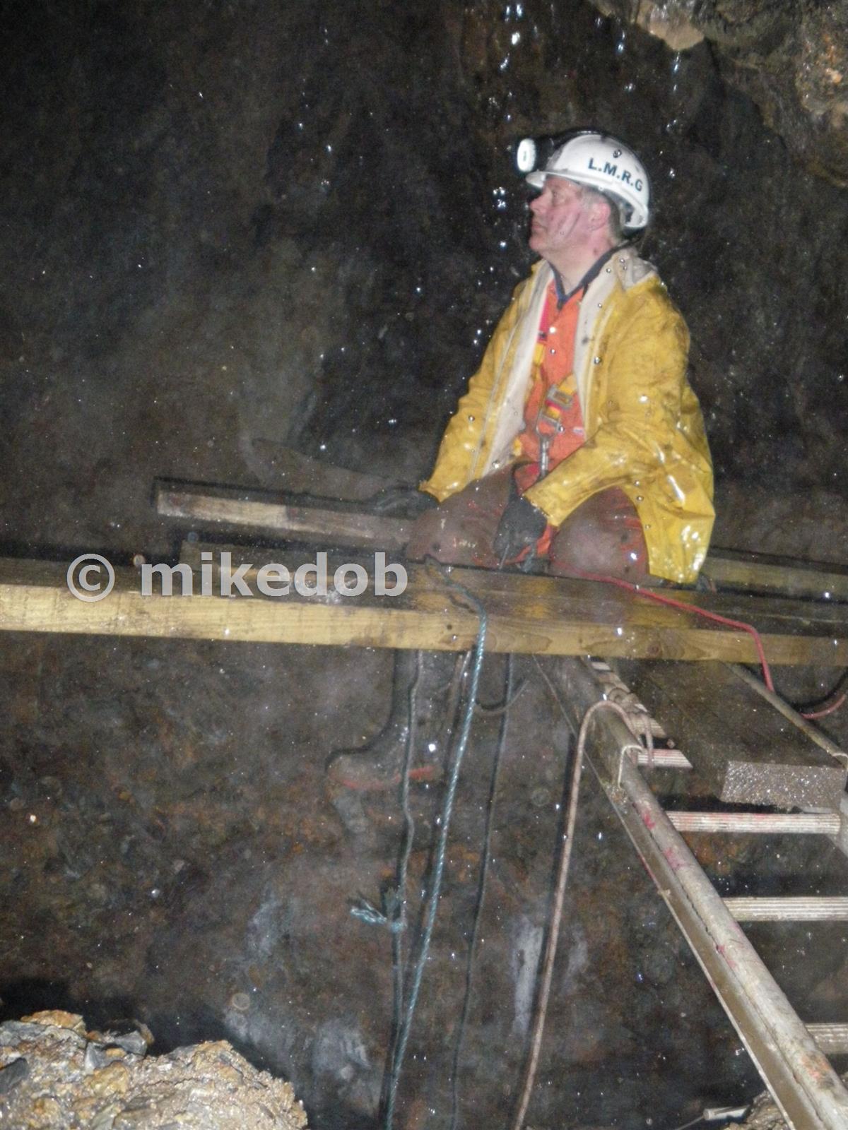 This picture was taken whilst we were putting in safety lines in to gain access around the winze. 4metres under T.C. is 56metres of water