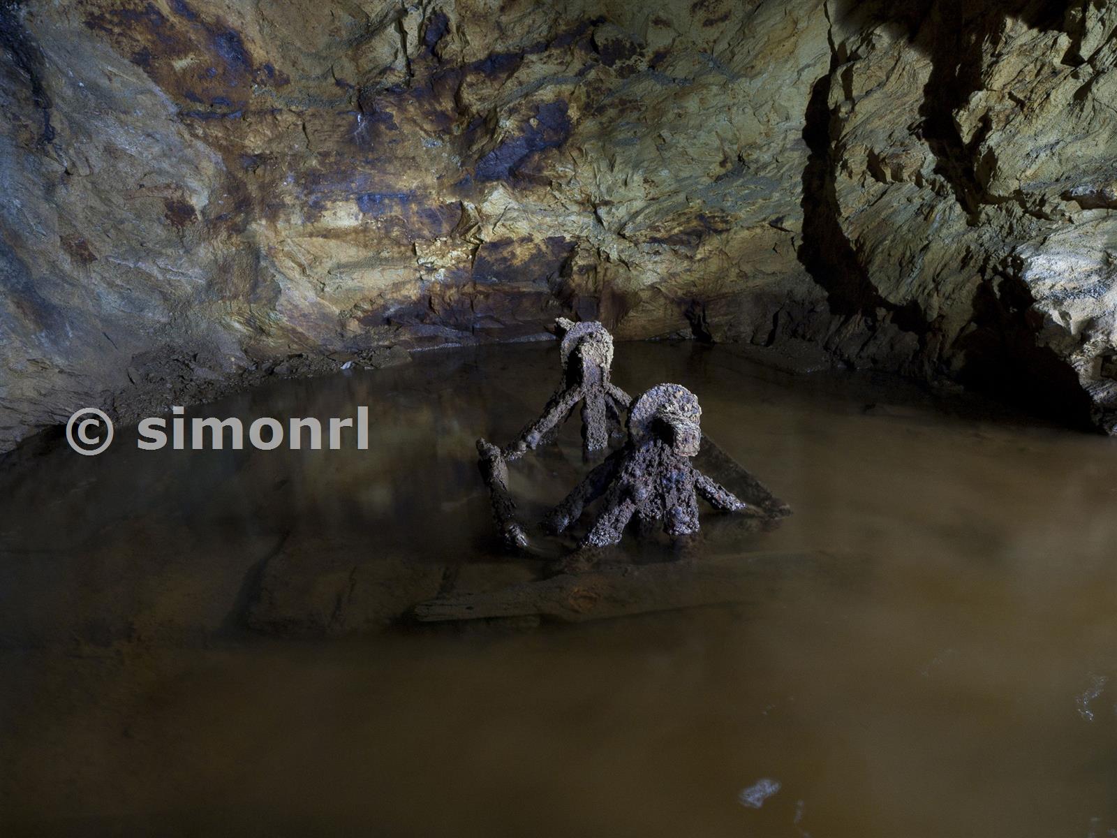 Flooded winze with windlass, lower accessible level Moelwyn Zine Mine April 2012