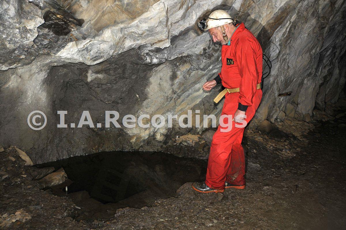 18 ft. deep winze in the main entrance adit. Winze sunk on the vein in June 1924. [Picture: October 2012]