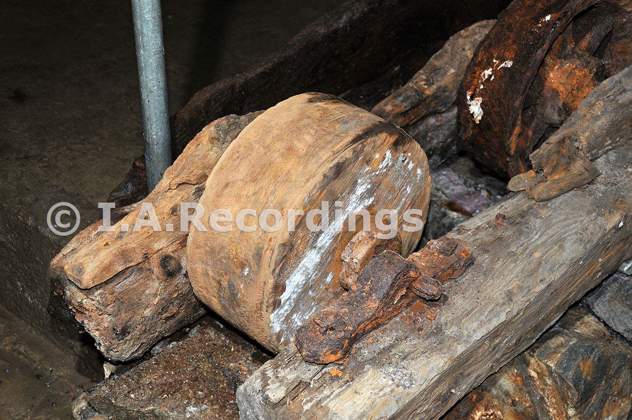 A wooden roller once used to support the wooden pump rods, in the main stope.