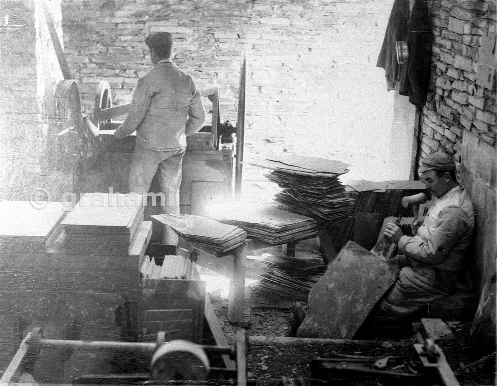 Ex-glass plate print. Splitting and dressing - note no guard on the dresser!