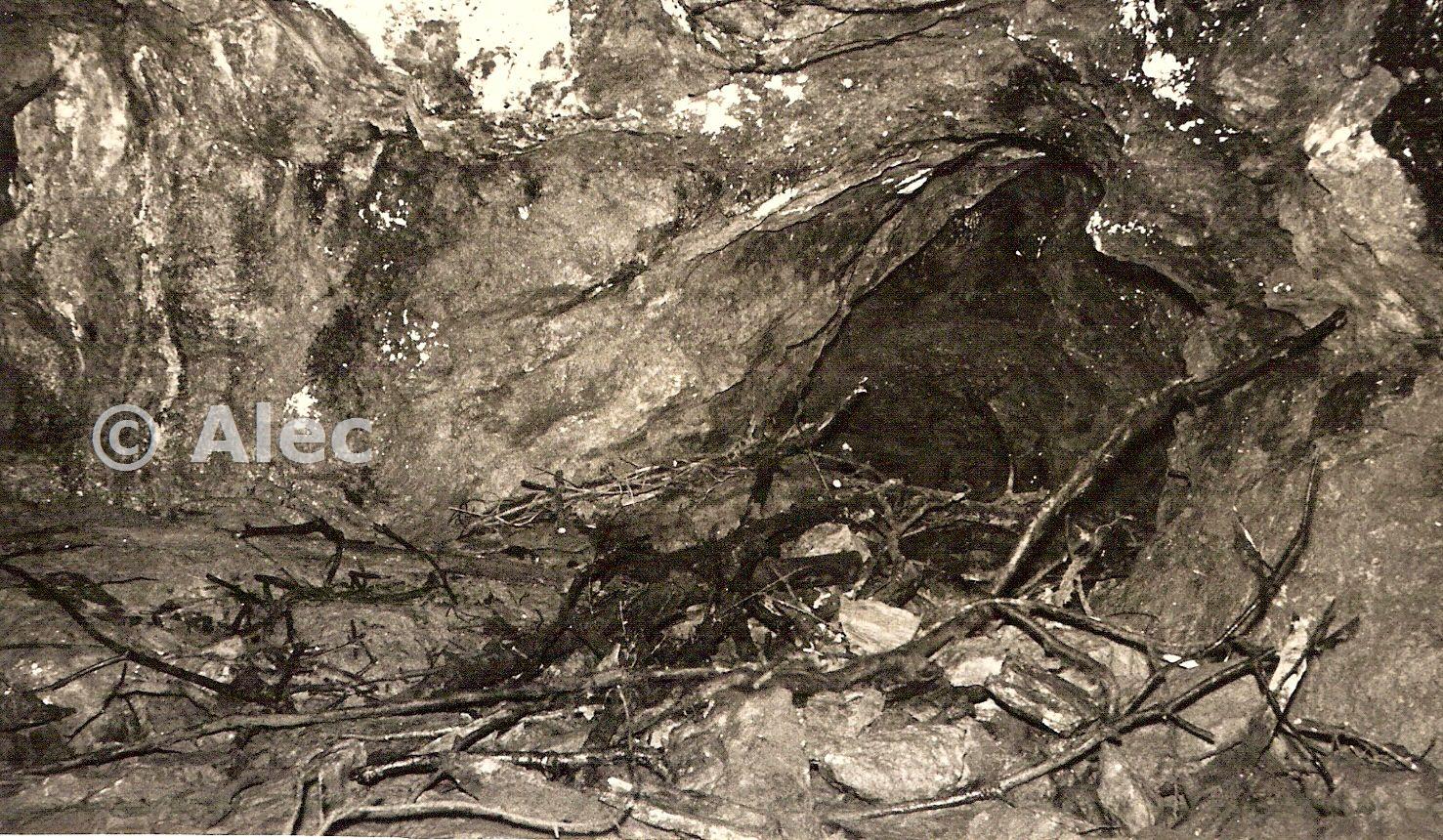 The level of water normally in the tunnel for hydropower purposes can be judged by the branches left stranded across the entrance to this level on the Georgina Lode.
