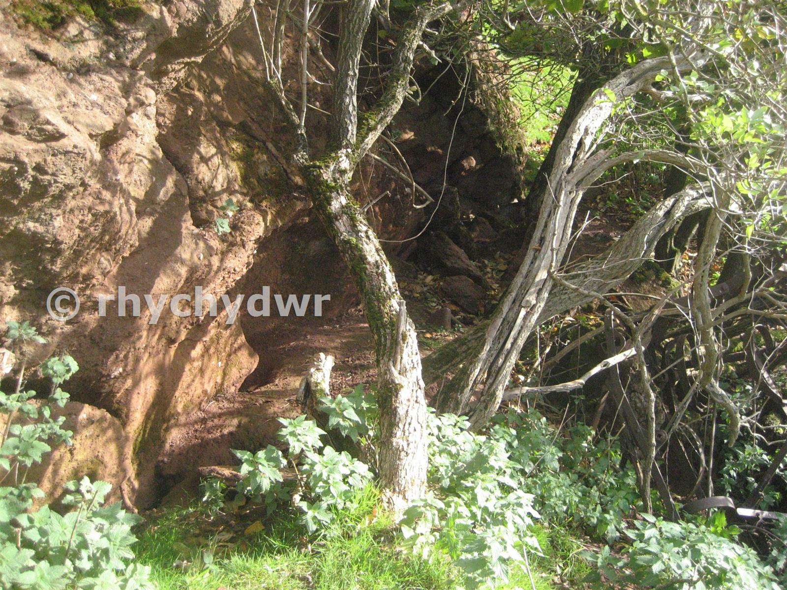 Outside the entrance. The out crop is 20 feet long with some small trees hiding the entrance.