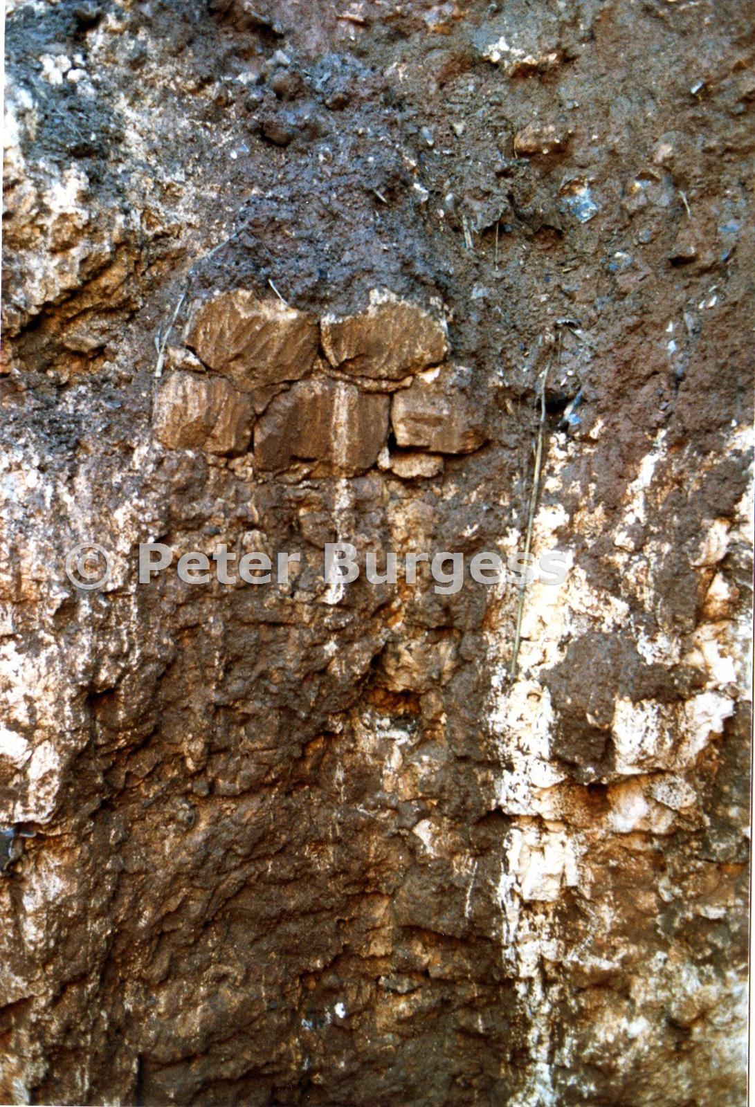 Small section of chalk block steining resting on chalk bedrock. February 1988.