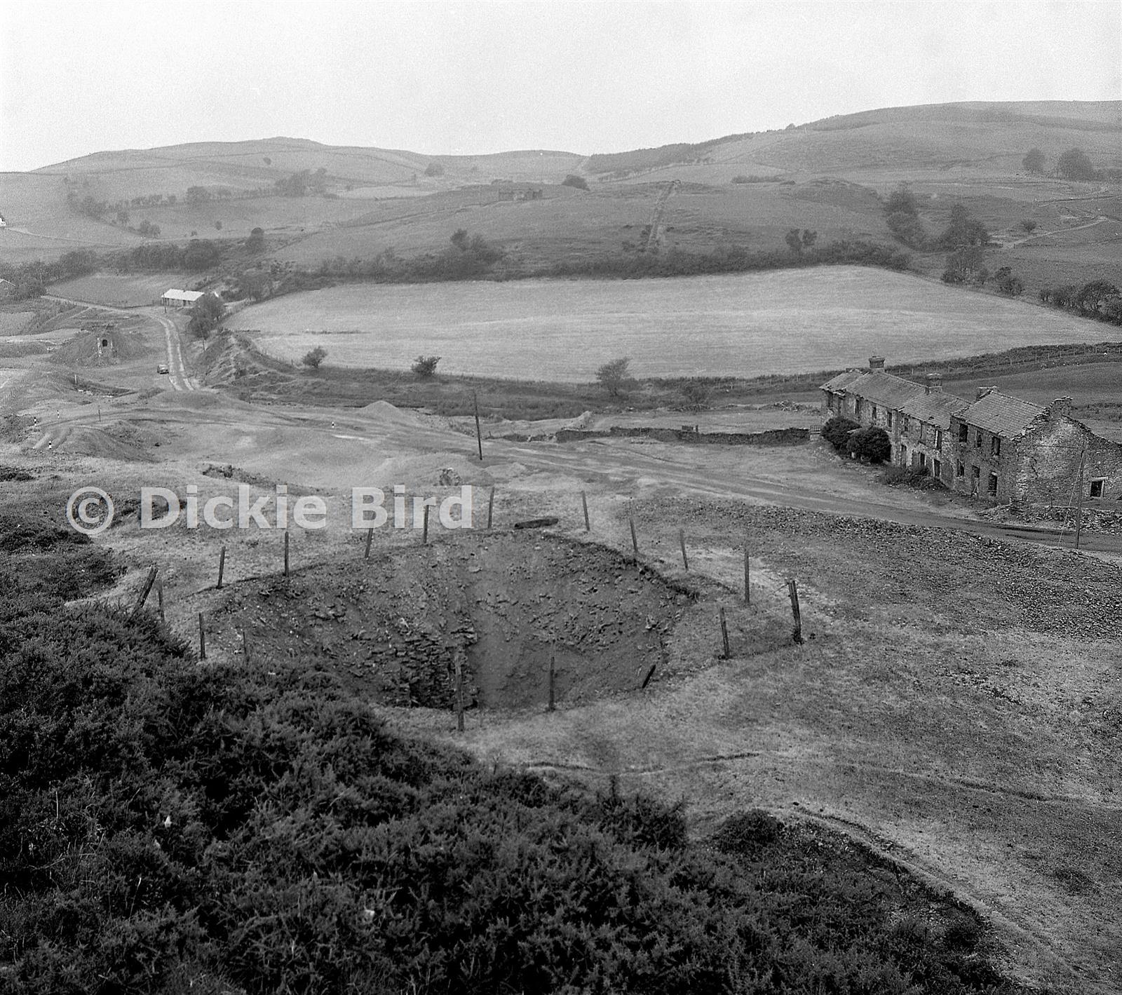 Cottages were demolished long ago. Penrhiw engine shaft structure can just be made out in the distance to the left