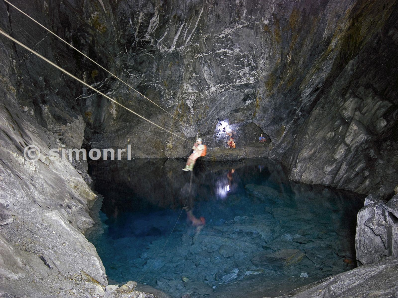 Crossing the zip wire in A3E Croesor Slate Mine 28/02/2010